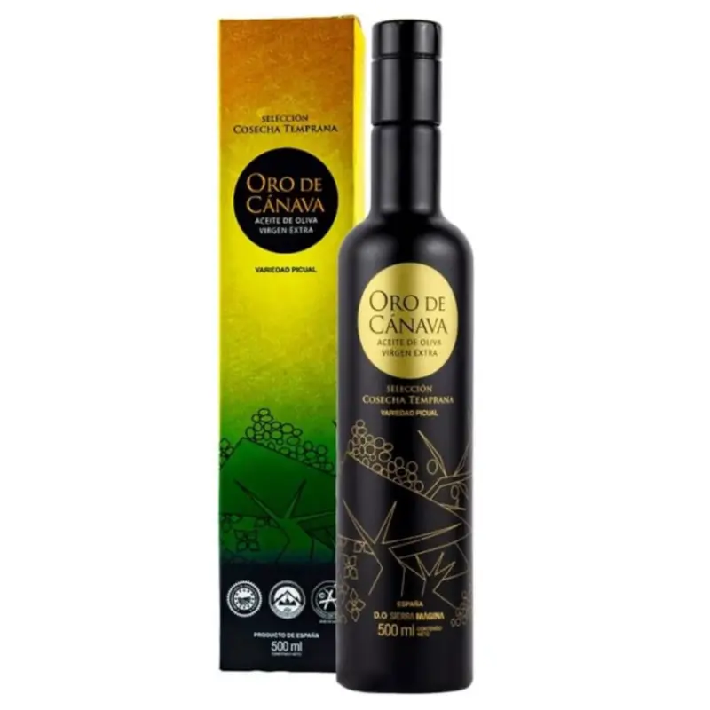 Aceite de Oliva Virgen Extra de máxima calidad, con carácter, origen definido y variedad Picual, este Oro de Cánava de 500 ml es una excelente opción. Su perfil sensorial es muy expresivo: aceituna verde, hierba, tomatera, almendra, manzana y en boca un buen amargor y picante progresivo, persistente. Es ideal para disfrutar en crudo y sacar todo su potencial.